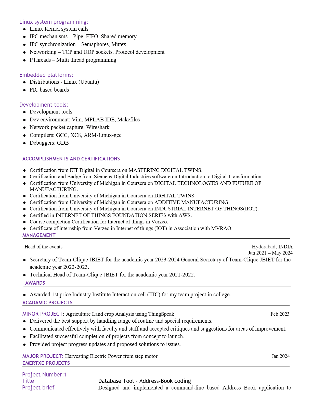 completed training at Emertxe & a